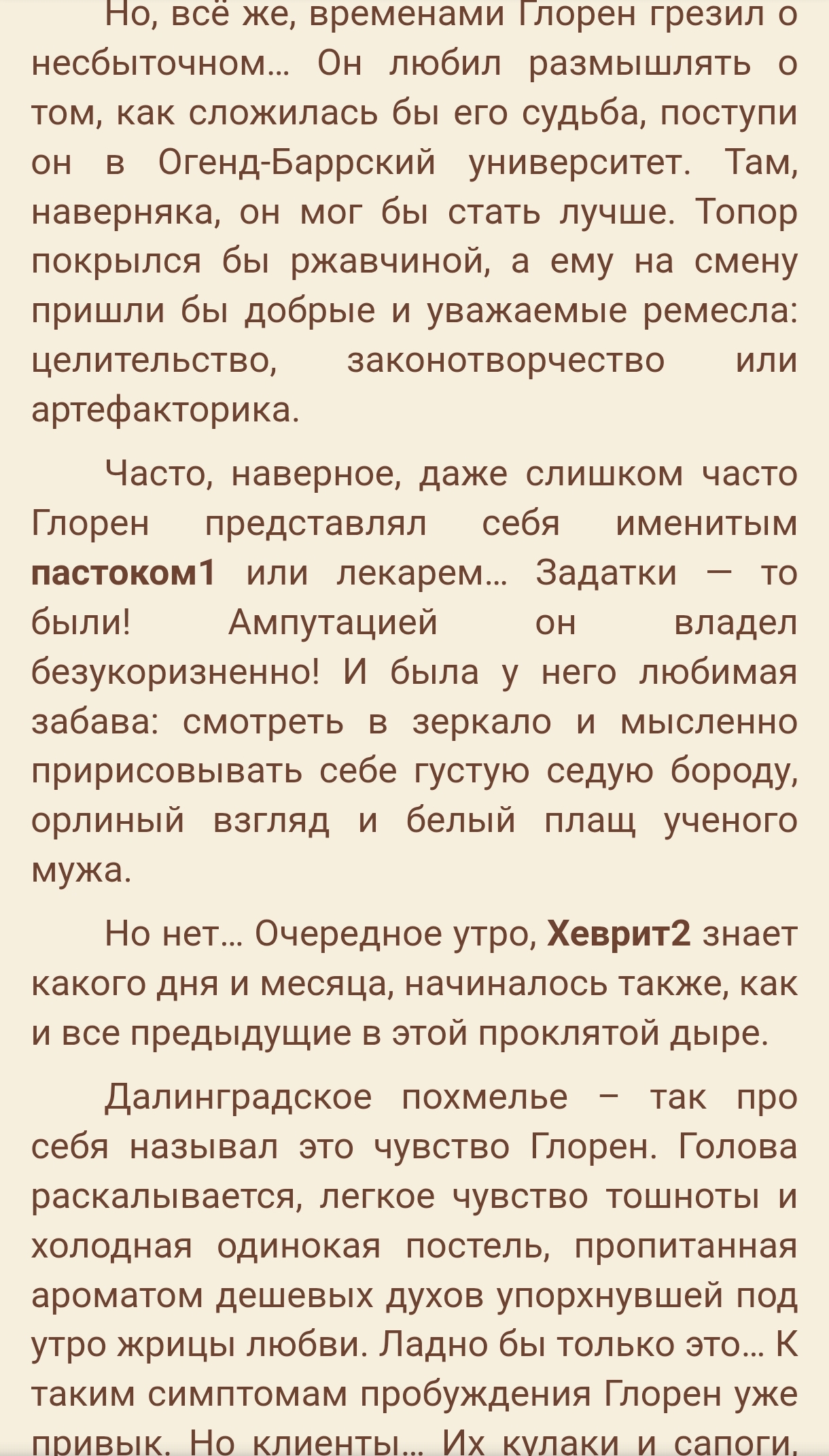 > Это ромфант. Проще говоря -- текст онанистический. Я ни разу, ни на секунду не удивлен, что вам понравилась эта новелла. Не без этого. Хотя я бы не сказал, что именно это меня увлекло — мне в первую очередь понравился сеттинг (я сейчас активно читаю про историю РИ и революции), который хорошо отражен в хрустобулочном стиле и антураже текста, плюс, оно очень напоминает аниме "Алдноа.Зеро", которое мне нравится.