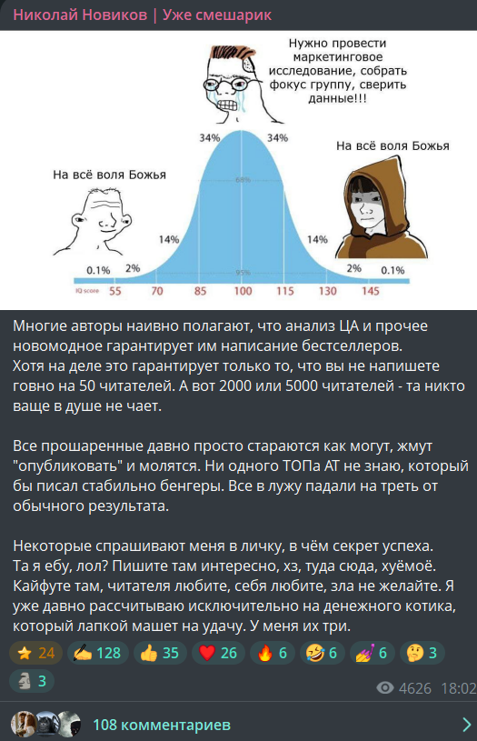 Но тут важно не то, что текст понравился мне, а то, что он понравился широкой аудитории АТ.