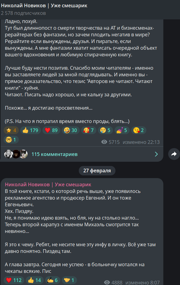 Это смешно. Все тексты на АТ уже состоят из генерации процентов на 50. У каждого писаки вторым окном после Гугл Дока открыт чатжпт, к которому он каждую минуту обращается за генерациями, а потом составляет текст из блоков. Те, кто кричат, что так не делают, — это самые потешные клоуны. А утверждать, что есть какие-то там святые топы, которые не пользуются нейронками, — это просто ахинея. Значит, литнеграми они пользуются, картелями пользуются, рерайтом корейщины пользуются, нейрообложками пользуются, а нейронками для текста не пользуются, лол. Самые первые, кто начал пользоваться нейронками, как раз топы. Ат состоит из нейрокала чуть менее чем полностью.