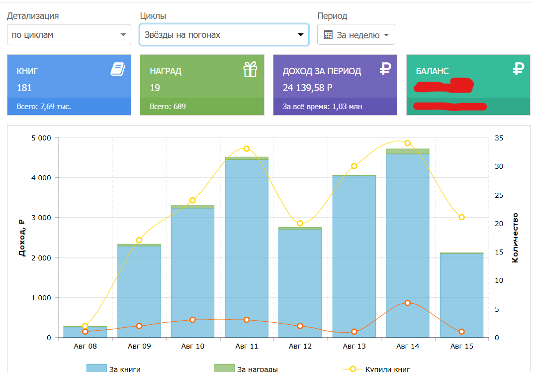 >Гигабоярой Нет, реклама абсолютно неформатной "Грибификации" тоже окупилась. Я вложил в её рекламу 5к, а заработал за пять лет с неё -- 20к. И даже реклама тотально провального попаданца в Гиммлера окупилась. Вложил десятку, а вывел 45к.