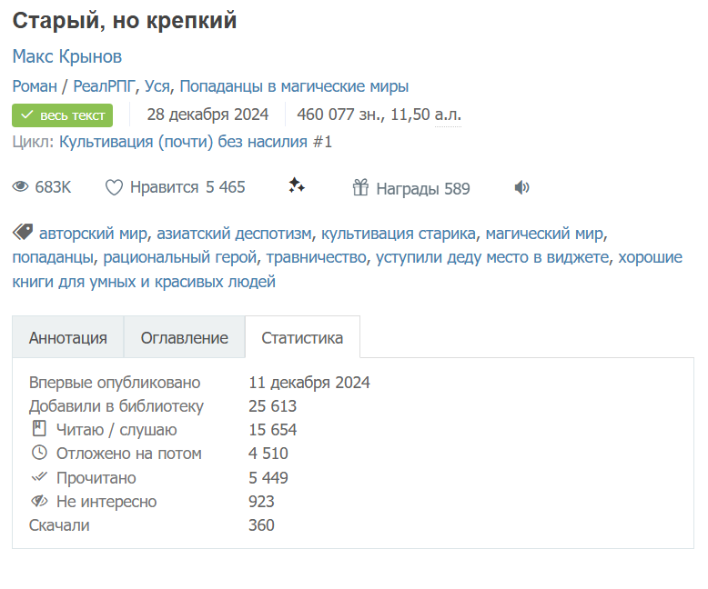 >Виджет Последних апдейтов, засранный спамом настолько, что каждое новое произведение выходит раз в СЕКУНДУ; Форматные истории, мелькающие лишь на СЕКУНДУ и тут же исчезающие в вечной тьме безвестности. АТ уже к этому пришёл. Ещё года три назад оттуда хороший трафик пёр. Сейчас, как правильно говорит Накул, оттуда приходят 3.5 калеки, в лучшем случае. Регулярно там вижу книги, не сказать, чтобы совсем шлак, но имеющие 500К+ знаков, выкладывающиеся по 15К раз в день, иногда собирают двузначное количество библиотек, хотя раньше имели бы в разы большее значение. И всё это из за того самого спама-шлака.