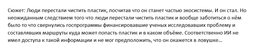 Хотел написать на конкурс. Придумал три сюжета для рассказа и один комбо из них. Но времени все не было. Под конец, думал даже нейронку попробывать, по плану пусть напишет. Но пропустил таки конкурс. Зато, появилось вдохновение закончить вторую половину своей книги. И сегодня продолжил писать главу.