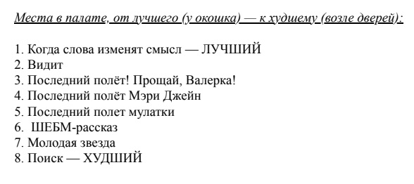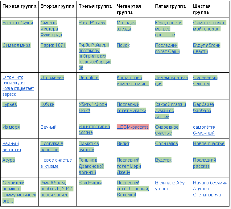 Блин, ОП, ты бы хоть приписывал красным текстом к отсеянным рассказам причину (т.е. рассказ кончился, перенос строки и красным текстом "за то-то и то-то"). Интересно же.