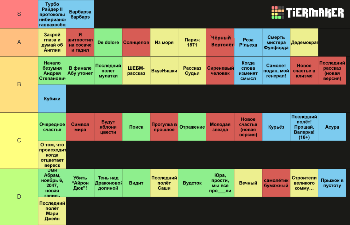 >>452129 Да хоть вообще не оценивай. Написано же в шапке: должен быть понятный рейтинг от лучшего к худшему.