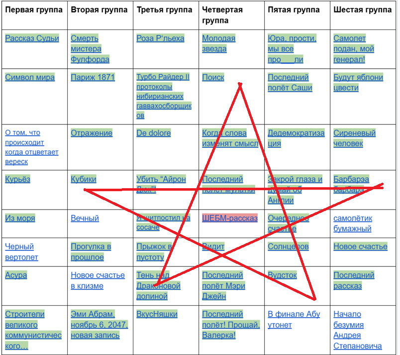>>452095 Полурандомно. Я по возможности старался распределить так, чтобы группы были примерно одинаковыми по количеству знаков и в них было не больше одного автора с двумя рассказами. В остальном рандом.