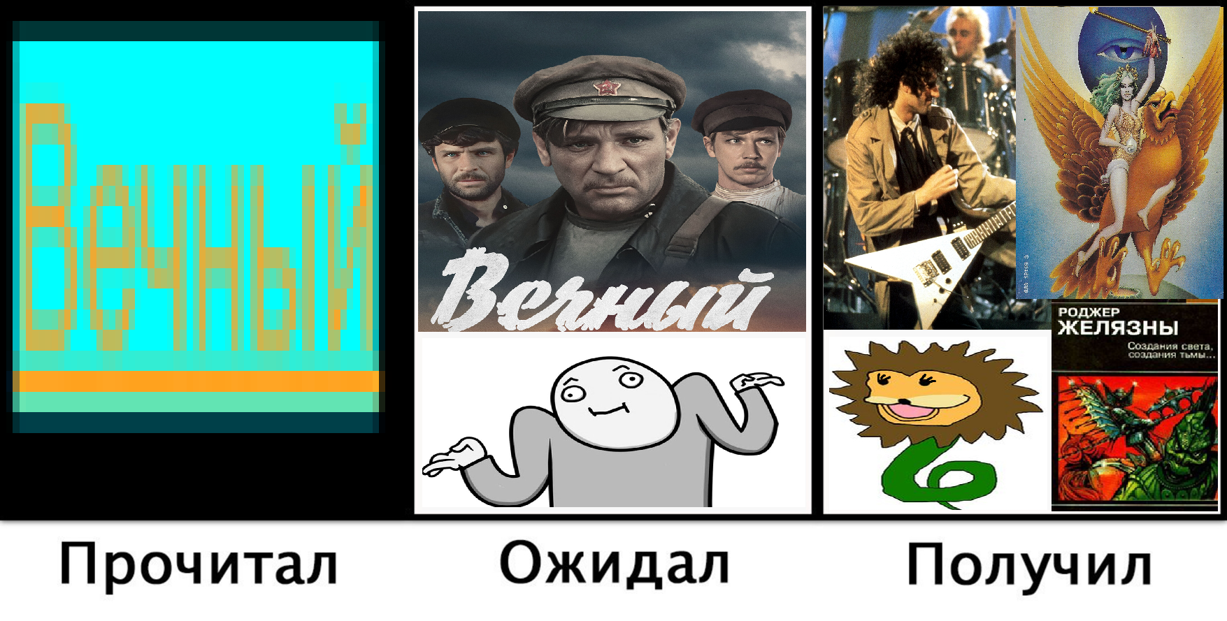 >>453237 Ну нихуя себе, вот это уже реально виляние жопой пошли. >Не существует ничего "интересного", как и "не интересного", Это блять не я ввёл понятие. Здесь чо за хуйня написана >>453211 Я его принял as is из контекста, и в целом похуй что там было вложено оно работает как переменая. > О чём тогда разговор? Об авторском сука нерве. >литературе начинаем относить бояру Я пишу здесь >>453219. Бояра не литература. Сериалы нетфлик не исскуство. Бояра эксплутаирует желание эскапизма а не какой-то там абстрактный "интерес". Между боярой и большой литературой, огрмоный пласт текстов. >дай определение "смыслу", Тогда это точно превратится в шапито потому что это интуитвное абстрактное понятие и редуциря вложные в него термины мы дойдём до того что наука не ещё не понимает природу сознания. Но можно сказать просто что это опыт, мысли и эмоции интерпритатора в момент интерпритации текста и рефлексия всего этого после.