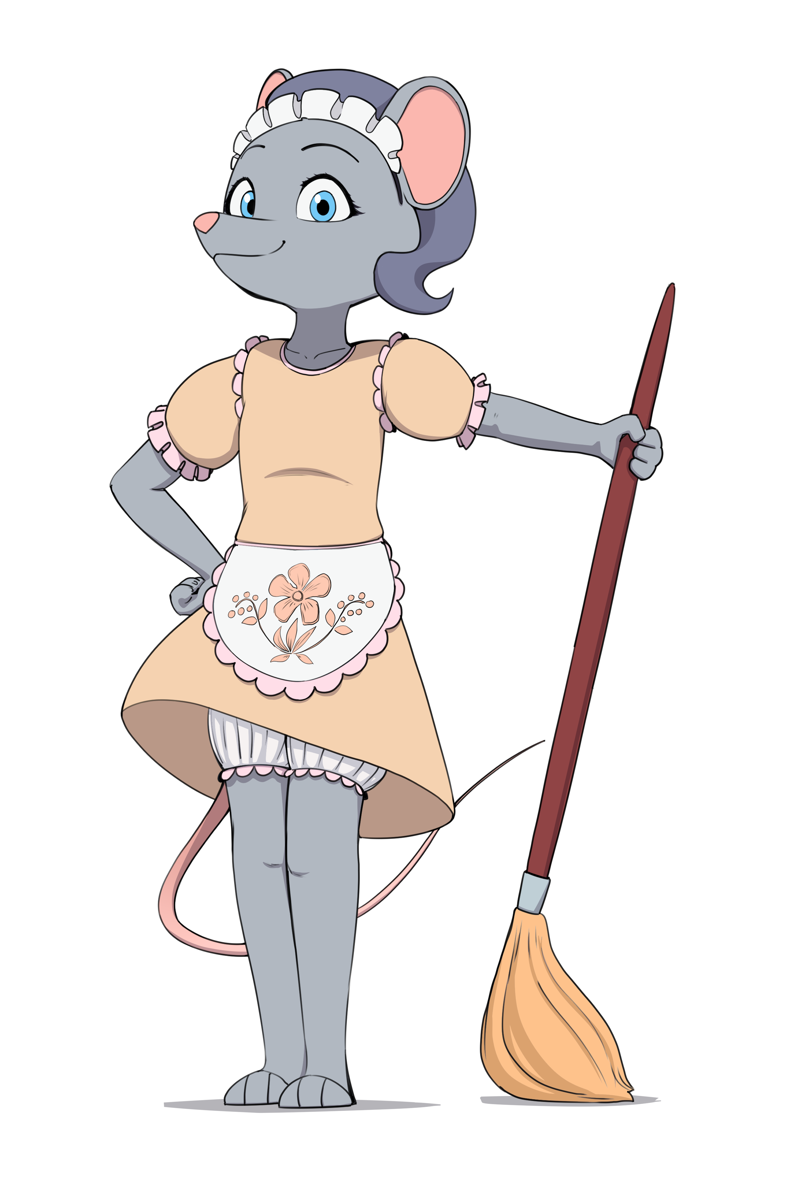 Прошмыгнув в дверной проём, мы нос к носу столкнулись с хозяйкой деревянного домика. Низкорослая, худенькая, одетая в изрядно выцветшее, но чистое бежевое платье, она прижимала к груди черенок метлы. Её угловатые коленки слегка выглядывали из-под подола, застенчиво прижимаясь друг к другу, а длинный голый хвост почти доставал до пола. Мордочка хозяйки была вытянутой, под розовым носиком заметно выделялись два крупных верхних резца. И даже белый чепец на голове не мог скрыть аккуратные округлые ушки, венчавшие макушку владелицы.