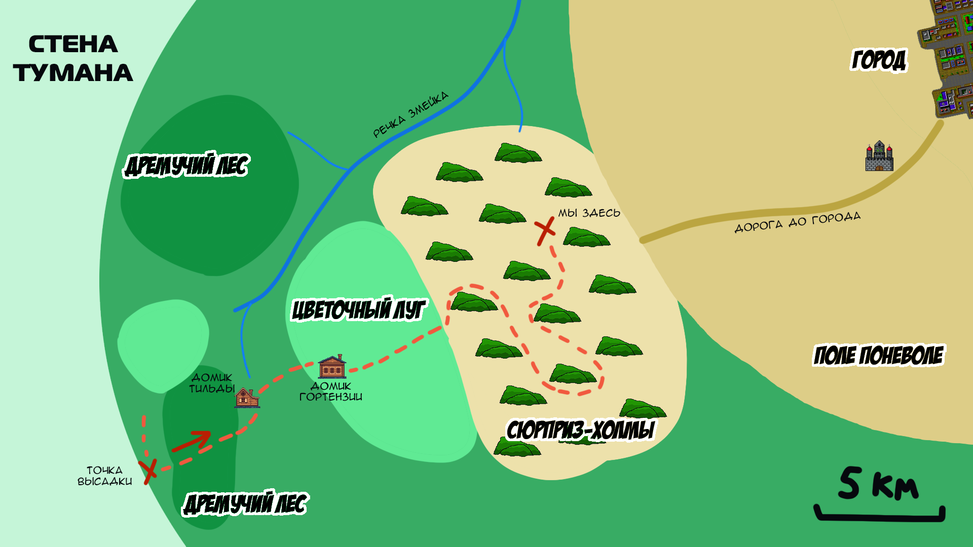 – Скоро начнутся сюрприз-холмы, так мы их называем. Каждый новый холм копия предыдущего, и за каждым скрывается определённый сюрприз, – объяснила Тильда. – Но чаще всего сюрпризом оказывается ещё один холм.