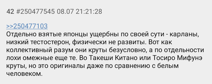 Но ведь тот факт, что индивид, вроде тебя, неспособен понимать кино, музыку и литературу Японии, при этом охотно потребляя мультики для японских детей - показывает, что: