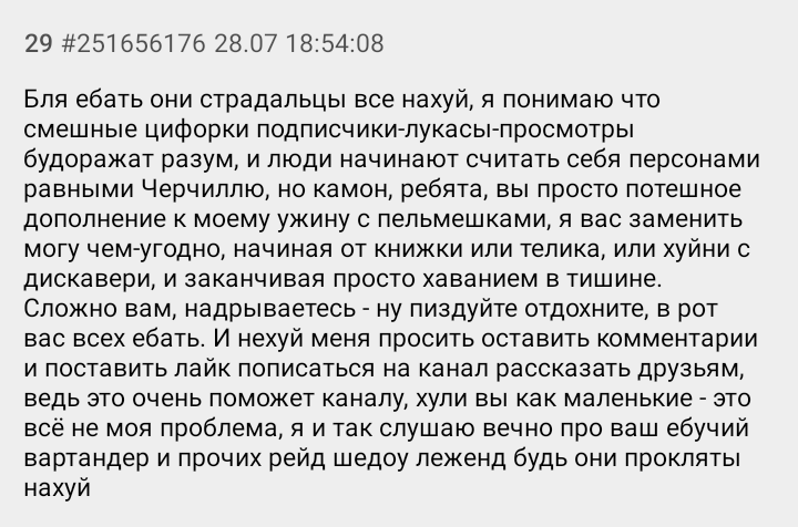 >В тематике положительно отзываются о сабже, которому она посвящена, иначе бы самой доски просто не существовало >В треде это преподносится как что-то ВНЕЗАПНОЕ Съебал на /по/рашу быстро и решительно.
