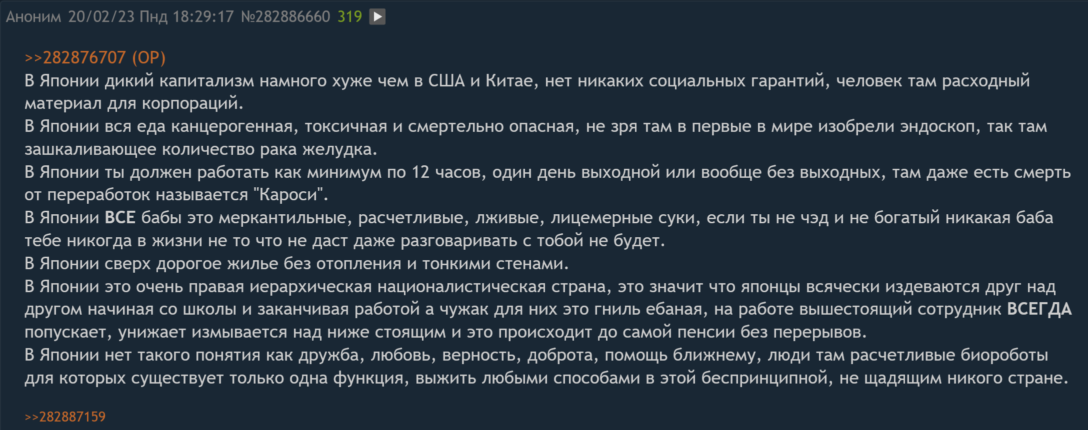 >>267913 Постоянно кекаю с кокиподобных оболтусов, что вещают со своей колокольни на весь мир. Очевидно, Коки ー просто не вписался в общество, но отвергнуть его не может. Жена русская, язык русский, НО ПОЧЕМУ-ТО живёт в Японии.