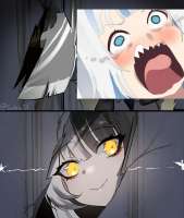 Ну в том вот коллабе Нери и Шиори были какие-то попытки наладить контакт друг с другом, постоянные подъёбы и всё такое. Звучало конечно натянуто, словно они дезориентированы и пытаются вслепую нащупать роли для себя, но я верю, что они ещё друг к другу привыкнут и будут выдавать больше диалогов в стиле холо.
