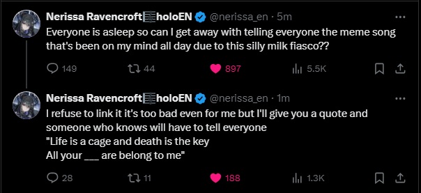 Потешно, но нерелевантно. Клипвотчерам даже не хватает айсикью понять что их не любят потому что они потом носятся со своими клипами и спорят о том о чём не знают, т.к. скипнули стрим. А потом такое чмо с серьёзным ебалом заявляет про "такого не было", когда речь заходит о чём-то неприятном, ведь в нарезках были только смехуёчки. Особо показательно когда на каких-нибудь ивентах типа ENReco высираются тонны фанарта противоречащего событиям ивента, потому что клипвотчеры не смотрели его, а просто натянули сову на глобус и нарисовали свою оши там где её быть не должно, потому что она скипнула 90% этого ивента или никак не взаимодействовала с основными событиями/персонажами ивента.