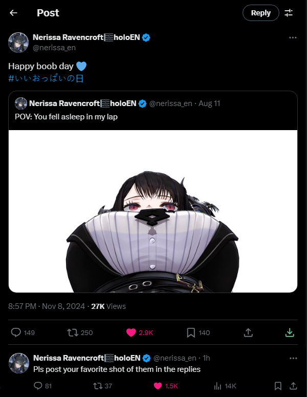 Там Cover выкатил финансовый отчёт за второй квартал этого года, Яго довольно урчит, всё растёт и расширяется. +78% in merchandising revenue +90% in revenue from licensing and collabs paid 1.5 billion yen in talent remuneration, up from 1.15 billion in Q2 last year