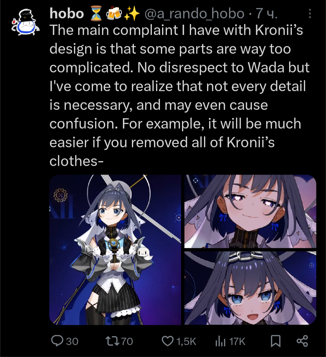 Ну это полный кал, а не дизайн. Выглядит так, будто она сказала художнику сделал реколор Губы, а потом стала докидывать всякое тупое говно вроде кошачих ушей, чтобы ягу не засудил.
