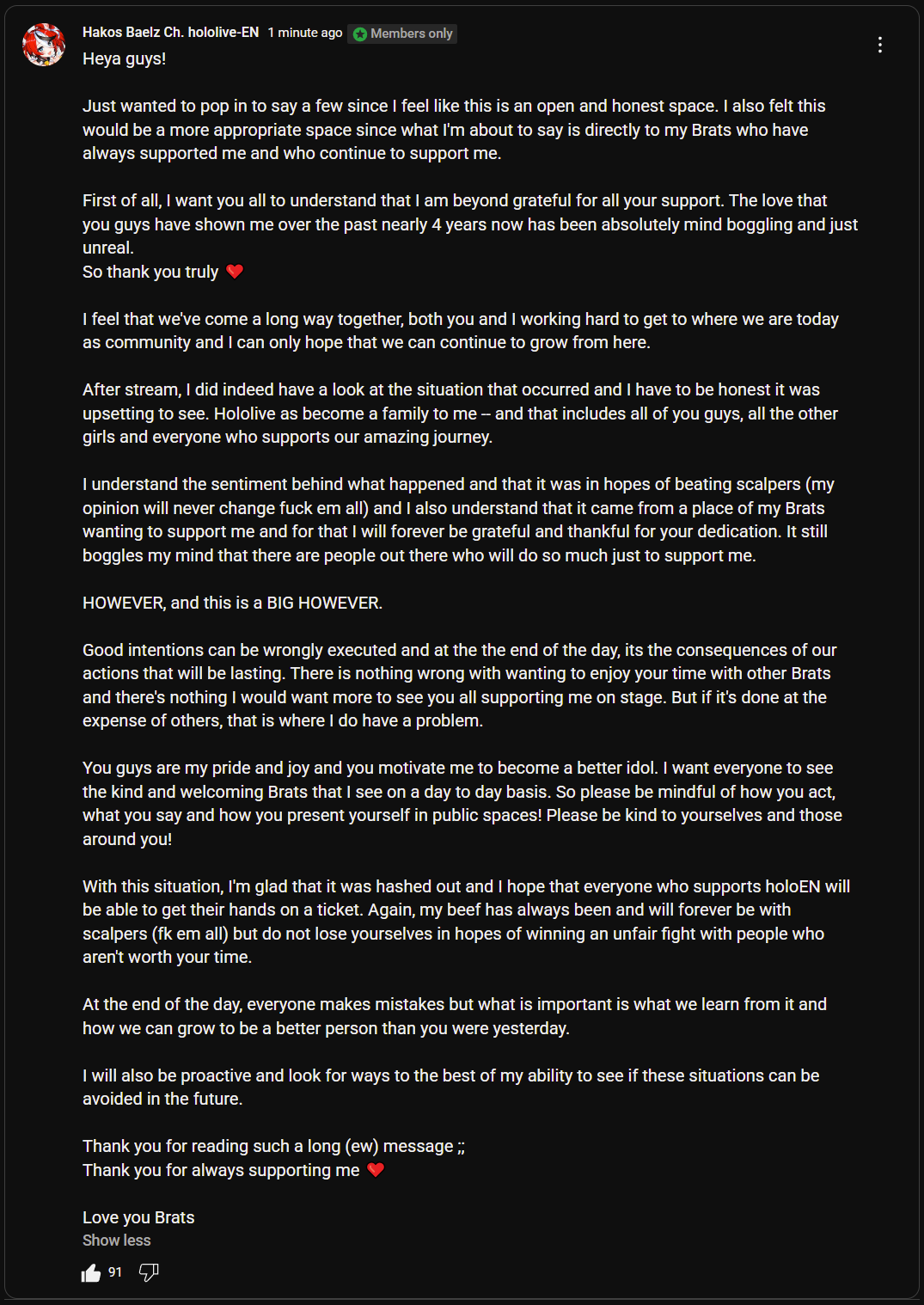 >>464948 Крыса сама тот ещё кринж выдала. Вместо того, чтобы высказаться прямо, выдала сначала уклончивую хуйню на стриме, а потом аж целую пасту такой же уклончивой хуйни, где большая часть текста про love, support, pride и joy, а не про то, что эта паста пытается донести. Это уже турбокринж какой-то.