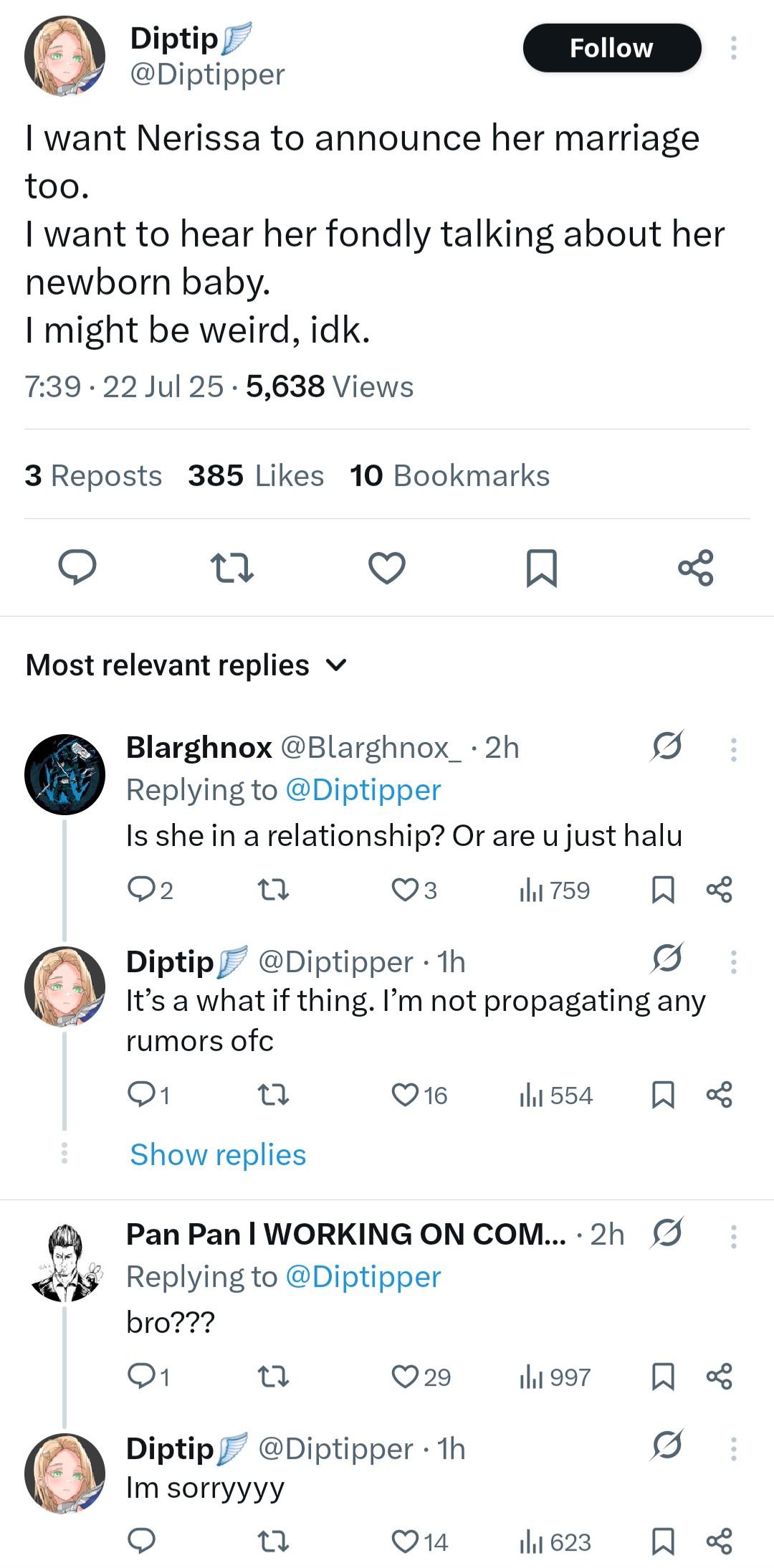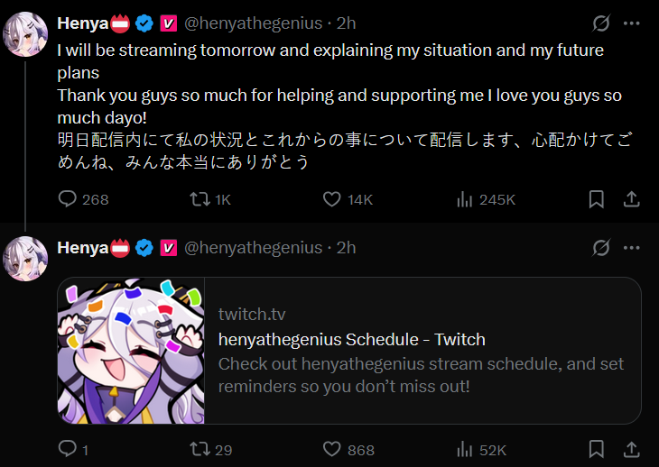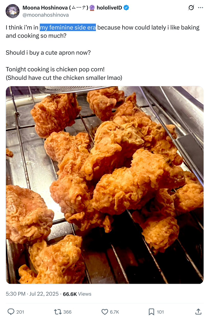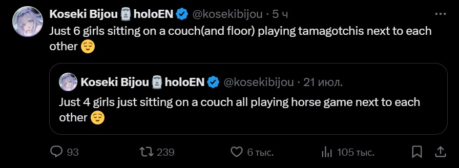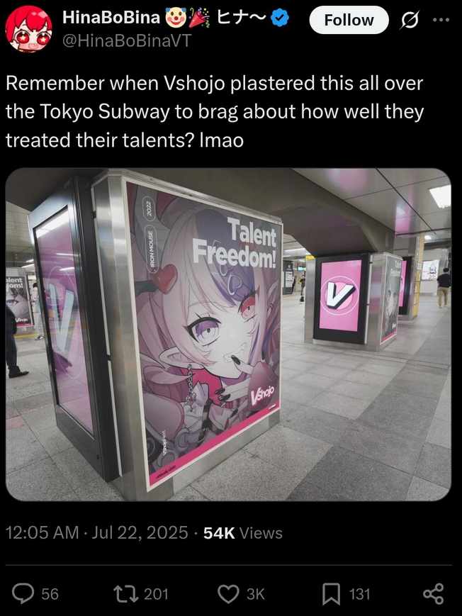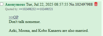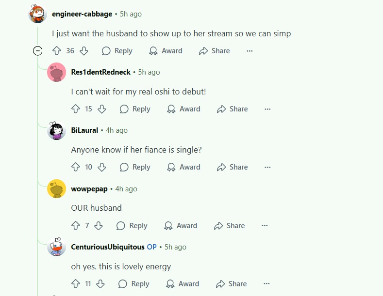 С Ними подрыв конечно неудивителен и понятен, но мне кажется, что это скажется на её карьере чуть менее чем никак. Возможно ещё и прецедент для остальных создаст. В прекращении лицемерия ничего страшного не вижу. Насчёт куколдизма тема более тонкая: понятно что айдолы должны быть типа дохуя пьюр и верджин, и что на многих чуб это тоже распространяется, и понятно также, почему. Но имхо реально прибабахнутых дрочеров трогающих экран не так уж и много осталось, хз может у японцев такая тема пораспространеннее, но за пределами - сомнительно. Мне кажется, что витуберы от айдолов отличаются примерно так же, как дом 2 от журнала мир звёзд - и там и там сплетни, драмы и жизнь в паблике, но в первом случае есть специфика буквального круглосуточного лайв-шоу, и интересно уже не столько наблюдать за творчеством, трансформацией образа и выходами в свет, сколько за общей динамикой сюжета, да ещё и с некоторой долей личного присутствия. Многим чубам в ответ на флирт вообще отвечают ew или pls respect my boundaries, ну какой тут куколдизм.