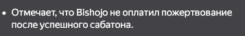 >>470214 Мыш сказала что ей с 22 года не платили. Может и пиздит, может нет - до суда вшоджо просто ликвидируют, так что этого мы не узнаем. Можно будет следить разве что за уголовкой по мошенничеству с благотворительностью, но и это только если этих "предпринимателей" поймают.