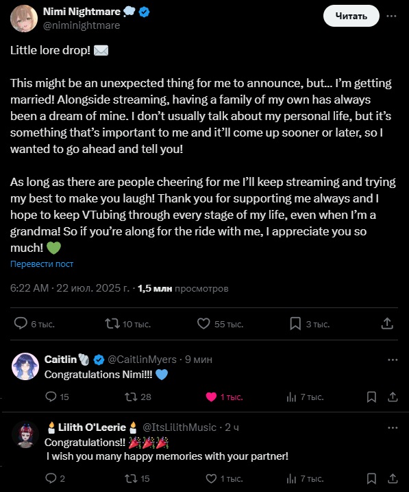 >>470086 В том, что зачем из этого событие делать? Не нужны никакие отмазы, не нужно обходить тему, но пост с анонсом замужества с основного аккаунта, как будто чего-то важного для зрителей, это уже слишком.