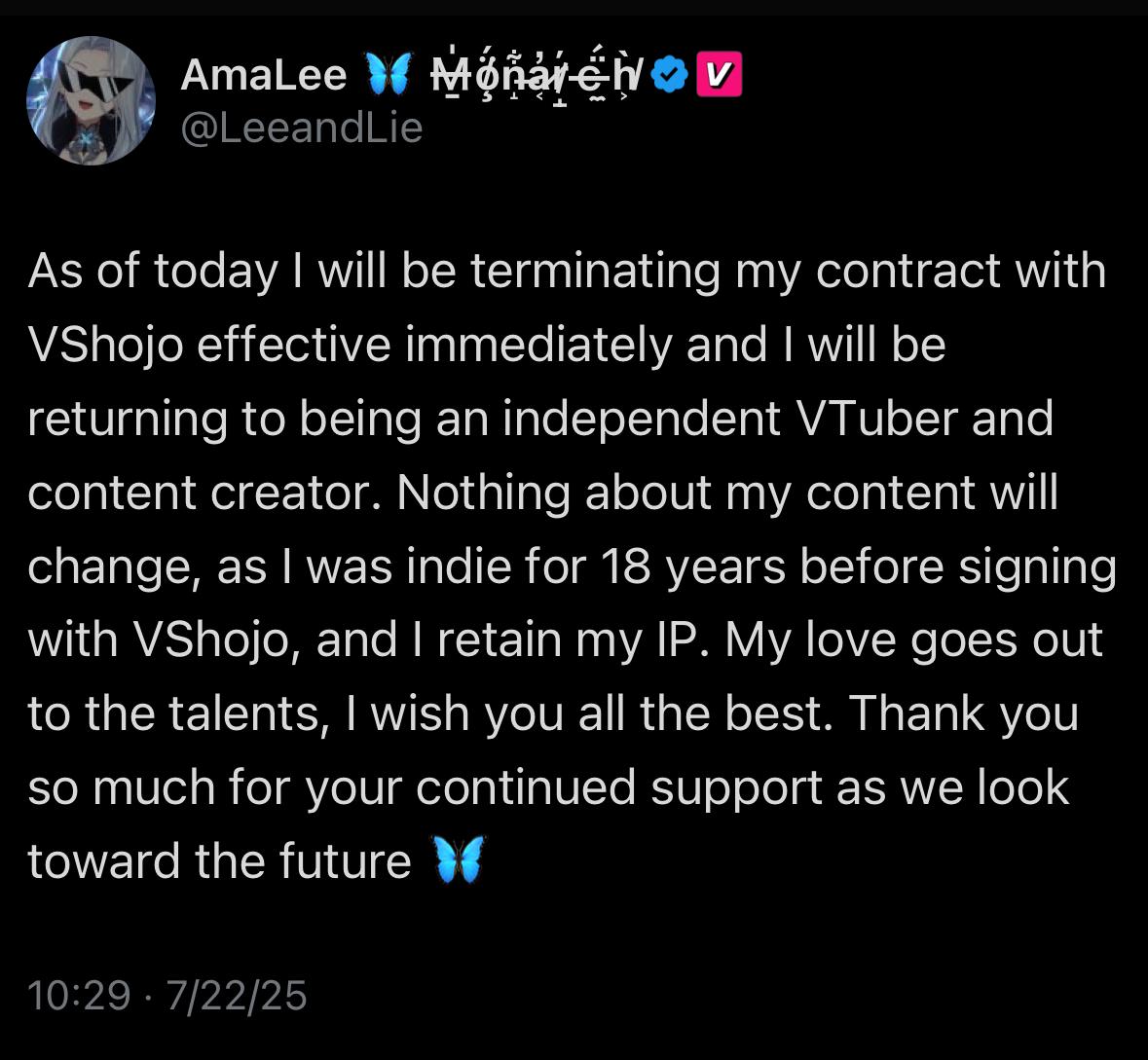 >>469939 Ну вот в Висёдзё витюберши сейчас старательно открещиваются от корпы (как когда-то от Сильвервеёл, мхех). Напрямую пока не посыпались, но явно скоро начнут рвать контракты.