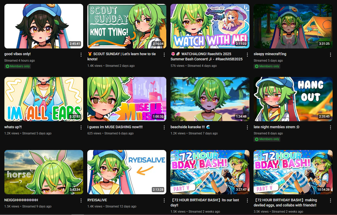 >>469546 Могу добавить, что ваши подписки тоже вносят лепту в рекомендации. Если вы подписаны на нескольких витуберов, особенно из одного агентства, то чаще будут рекомендоваться клипы с ними и косвенно с ними связанными витуберами. Если мало на кого подписаны, но смотрите витуберов, то будут рекомендоваться любые популярные за последние сутки клипы с ними.