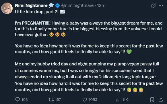 Итак, смысл прямо таки написан в самом тексте лор дропа. "Рано или поздно об этом бы узнали." Ебырь обязательно спалит себя на стриме или как-то еще, и тогда Ними окажется грязной шлюхой, обманывавшей свою аудиторию. Она видимо решила быть честной и вскрыть этот гнойник сейчас, а не сидеть на пороховой бочке всю жизнь.