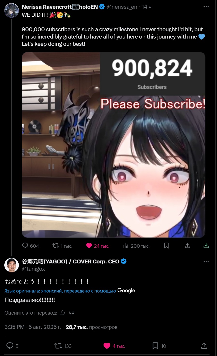 >Оный и создал популярность такого явления как витубинг. Популярность создали компании, которые решили вложиться в раскрутку и рекламу, сдобрив всё это дело идолщитом, на который и клюнули парасоциалщики и которые пытаются проецировать это на всех чуб в принципе.