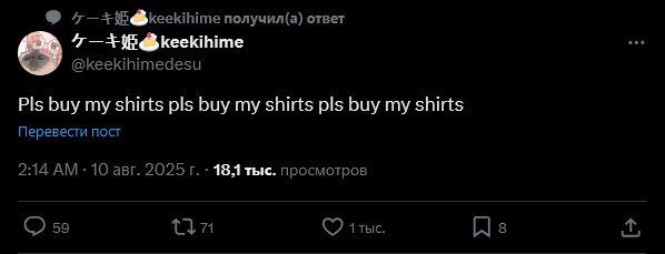 >>472730 По-моему, у тебя уже хейтспич. Сидеть у коллеги на стриме, чтоб фаны Крони пошли кней на накал, услышали её грустные истории, пошли в твиттер или на двощ искать ВАВА ИРЛ и там уже наткнулись на рекламу концерта. Нуну. Держи милашку и не выдумывай.