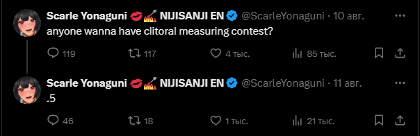 Согласен, поэтому будь так любезен не тащи новости своих мясных шлюх из Твиттера. Всем похуй на её концерт или куда она там поедет на выставку. А еще скажи проблядской Фауне, что она со своим лор-дропом может сходить нахуй. Всем поебать на её личную жизнь. А еще куче витуберов, которые подрубали вебку расскажи что они оказывается нерелейтед.