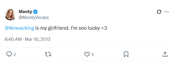 >>474119 Да скорее всего уже расстались давным-давно. Но если они начали встречаться в 2013, в 2018 она обьявила себя трансом, т.е. до 2018 это была вполне себе обычная баба.