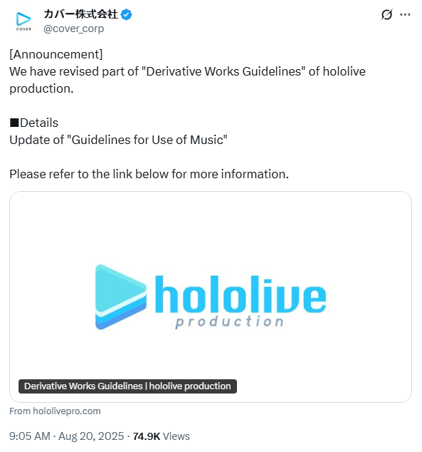 >>474742 Нет ну конечно другие музыкальные компании тоже могут дать разрешение фанатам, но я сомневаюсь