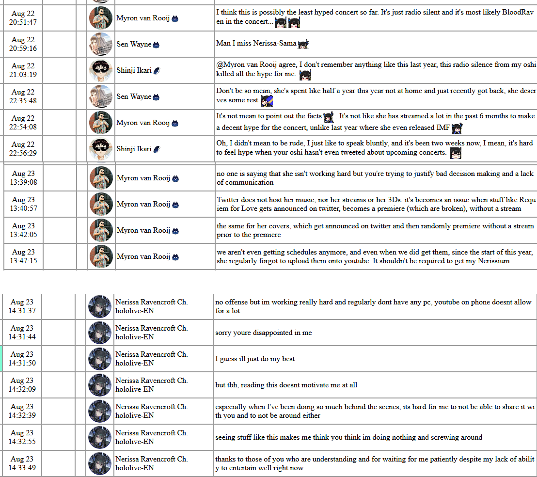 >>475410 Нерисса уже осадила твиттерных педиков во время твиттер спейса после концерта. Автор того твита роняя кал уже удалил его, осталась только ветка на реддите. Вообще оно того стоило, после всего инцендента, который явно был замечен менеджером, она наконец стала писать в твиттере в этот же день о концерте и даже провела твиттер спейс после, что уже хорошо.