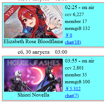 >>476099 Ну, тут был рейд, плюс в кой-то веки стрим ЕРБихи, плюс она была в отрыве от коллектива на концерте - интересно было, чем она занималась с Рисой съебалась на анимехпо и помирала от джетлага. Жаль Шуба перекрывает концерт, интересно почитать её обзоры, хотя один фиг там надо потом занюхивать.