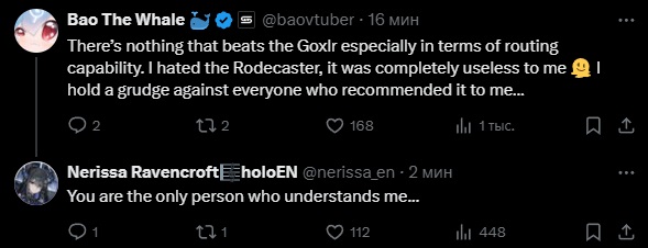 >>476887 Нет, но это вызвало щитшторм среди единорогов, которые начали обвинять Нериссу в том, что она продвигает Старсов и будет следующая с ними колабиться, особенно на форчане, поэтому и пришлось вмешаться и успокаивать. А вообще я нахожу кринжем, когда кто-то твитит полученные лайки от талантов.