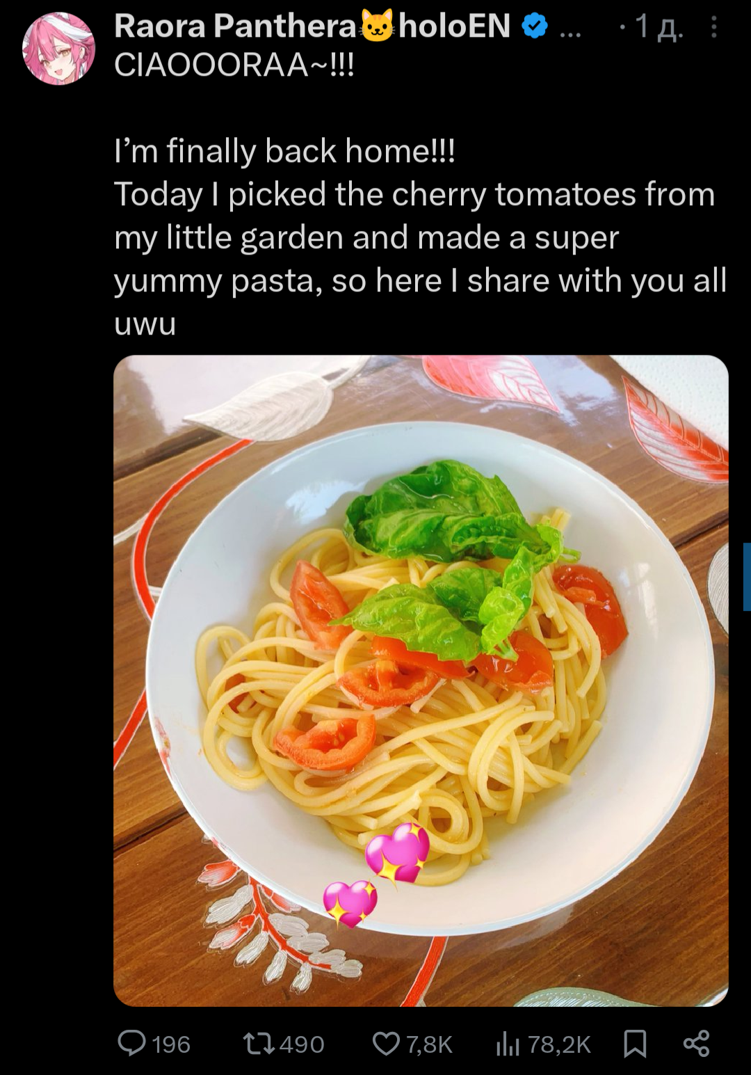 >>476492 Тут один рвётся с no_streaming Гуры Рибы, со стриминга Дубы его бы по стенкам размазало: в начале недели вернулась после лобызаний с Крони АФО, обзначила, что занята но на этой неделе будет коллаб. На данный момент у нас есть два поста, в одном она накатила кофе и на этом её деятельность закончилась, второй типичный шитпост в её исполнии: в анонсах - тишина, в хуях - тишина, на канале - тишина. И только благодаря подписке на Ремию, я узнаю, что завтра коллаба в каэсочку.