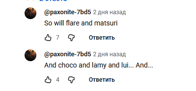 Вырезал эти отрывки, когда пиздострадал по бывшей, был в лютой депрессухе и только Мико-чан дарила мне лучик света, ее смех всегда заставлял меня улыбаться Вообще не понимаю японский, но было весело смотреть ее стримы и просто слушать
