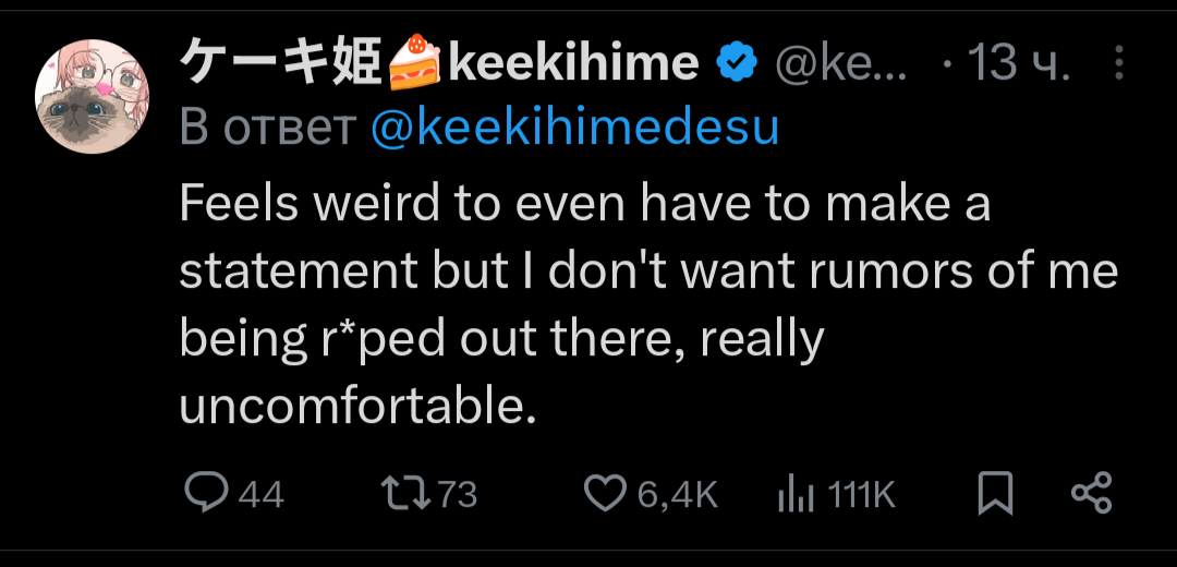 Нет, лютейшая самоцензура от обиженных кумеров-симпов. 70% разговоров про то как бы они залили спермой всё внутренности вставить_название чубы/какие они одинокие обиженные чуханы Еще 20% всякие говно анонсы. И 10% действительно то самое обсуждение. И негативное мнение почему-то долго не живет. ИНТЕРЕСНО ПОЧЕМУ ЖЕ ТАК? Да уж лучше на Реддите/Твиттере сидеть.