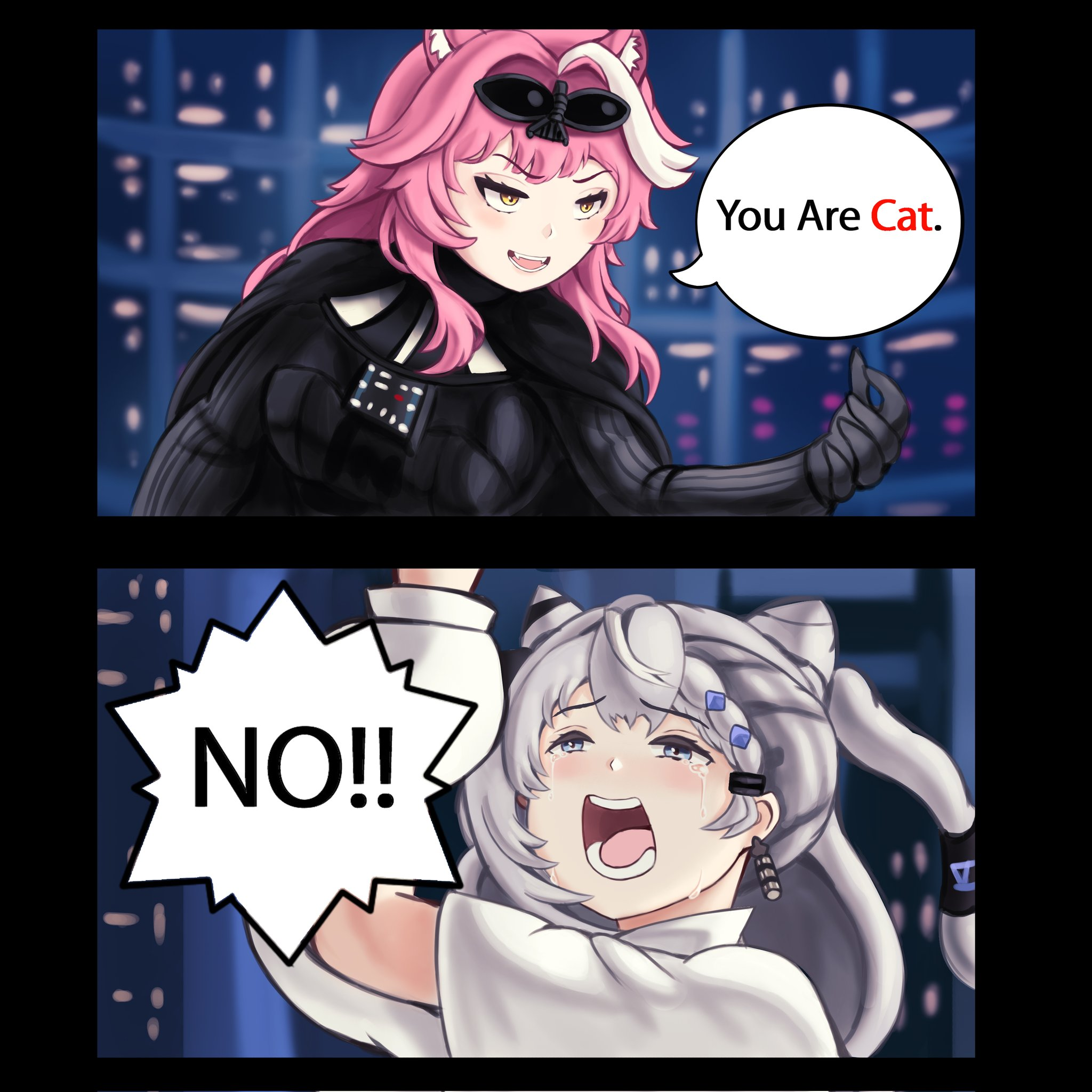 Из смешного на видео >меня харасили в комментариях фразами "Аня, вернись к своим дочуркам Нейро и Эвил" напомнило этот мэм, где две чубы пересекаются на улице и перекидываются невинными фразами, а после этого одна из них вентит на бордах, лимао.