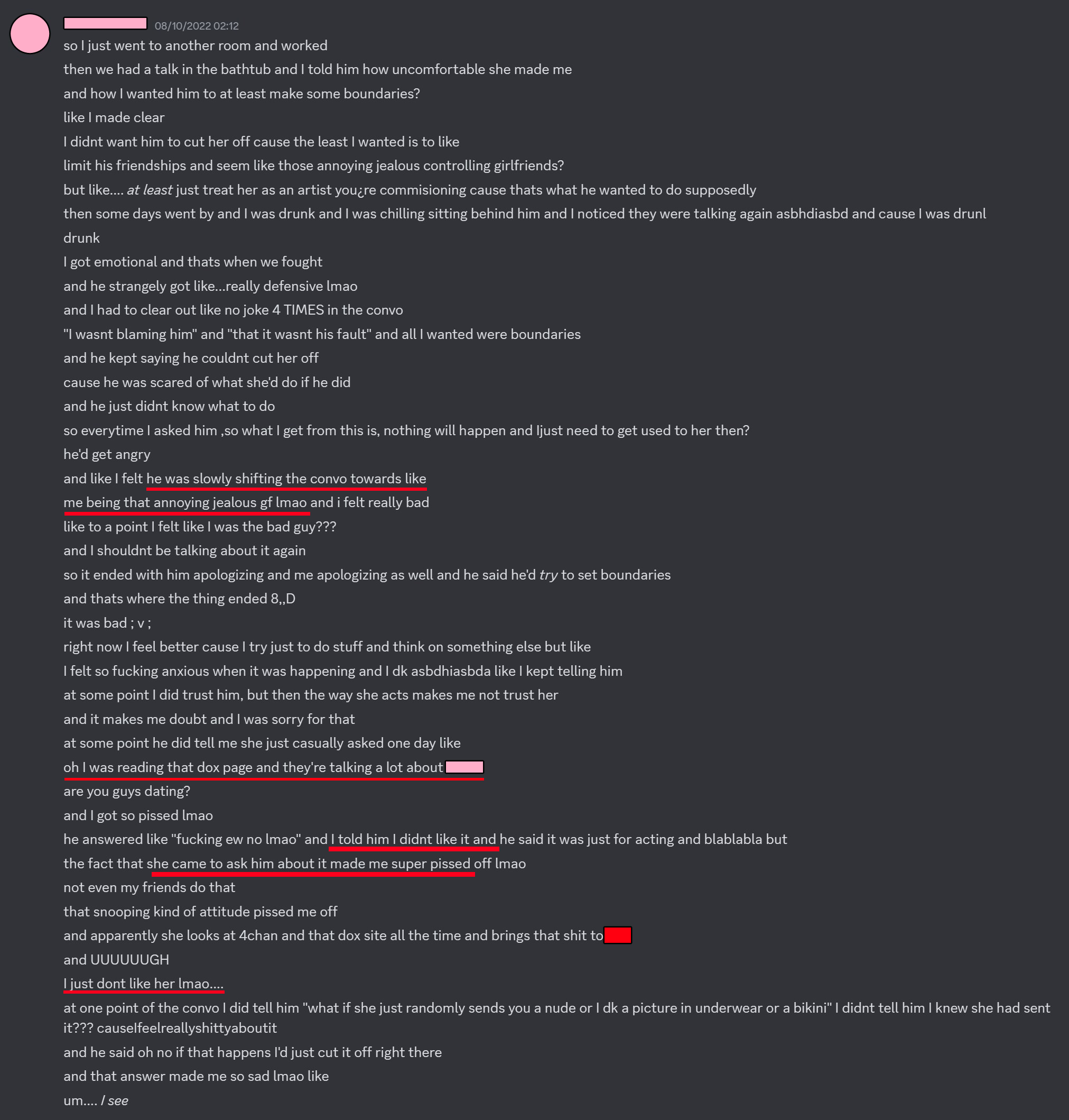 >>479776 Только что клип увидел и пошёл сюда чекать. Ну тут одни порашники офк, а так грустная история. Самое впечатляющее то, как многие в целом подозревали что-то подобное (я сам например был почти уверен что так всё и есть, но старался не пиздеть без пруфов), вот для таких это конечно ахуй оказался, когда всё подтвердилось. У меня ещё есть подозрение, что Тома и Лейна в курсе этой истории и негативно оценивают поведение то ли Ведала, то ли Сворма, потому что с этими двумя сейчас вроде как тоже какой-то раскол. Ну хоть с бэктьюберов удалось соскочить, всё-таки иногда коммьюнити видимо хватает ума понять прямую просьбу, может и от Энни отъебутся, и Ведала не станут допрашивать (хотя последнее вряд ли).