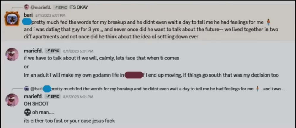 Поступили обвинения, что витубер MarieFD (бывшая Рэйму Эндоу из Nijisanji EN) занималась доксингом, угрожала смертью и вела себя неподобающе по отношению к витуберу Bariloaf. После личного разговора Мари якобы согласилась прекратить, но винила в некоторых поступках алкоголь. =БУХЛО СЛАБИТ=