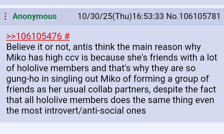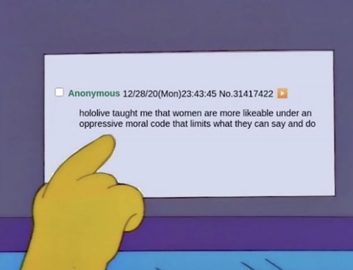 А вообще у тебя классический виктимблейминг. Ты не знаешь всей внутренней Холо-кухни, и то как бабищи могут быть лицемерны на публике и класть на тебя 3 хуя за кулисами.