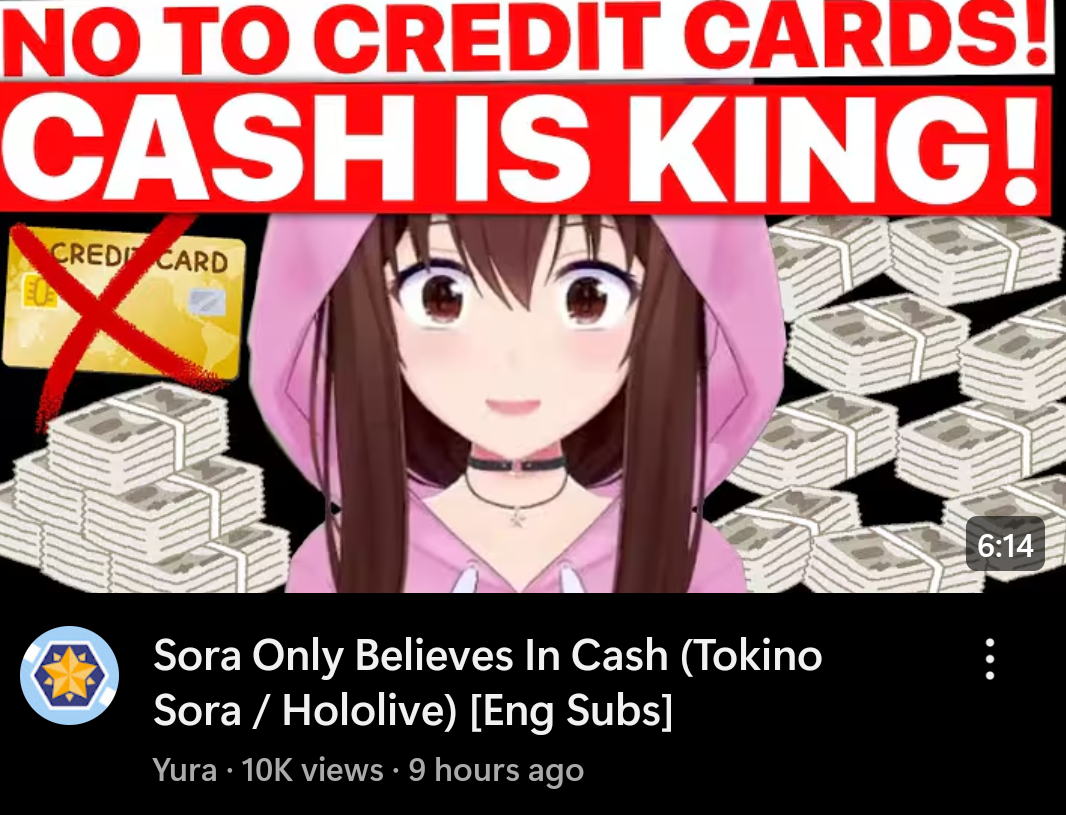 Приятель, который практически не смотрит витуберов, задал мне вопрос. Я списал это на японский рабочий менталитет, трудную юность в которой приходилось много работать, ну и то что Коронэ любит Соулсы + уже не молодая и пытается скопить себе на безбедную старость. А как вы ответили на данный вопрос?