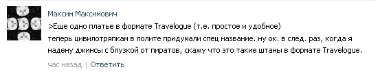 Несу! https://vk.com/wall-55735279_395 Суть: сабж нарисовал принт. Но нельзя же просто нарисовать принт, просто пошить вещь и просто ее продать, нужно объявить себя первым в России, а когда тебе в каментах говорят, что это не так, отвергать все аргументы словами, что другие недостаточно агрессивно пиарят свои успехи, а значит, первенства не заслуживают. Неленивые могут капсить, а то говорят, что Макс каменты трет.