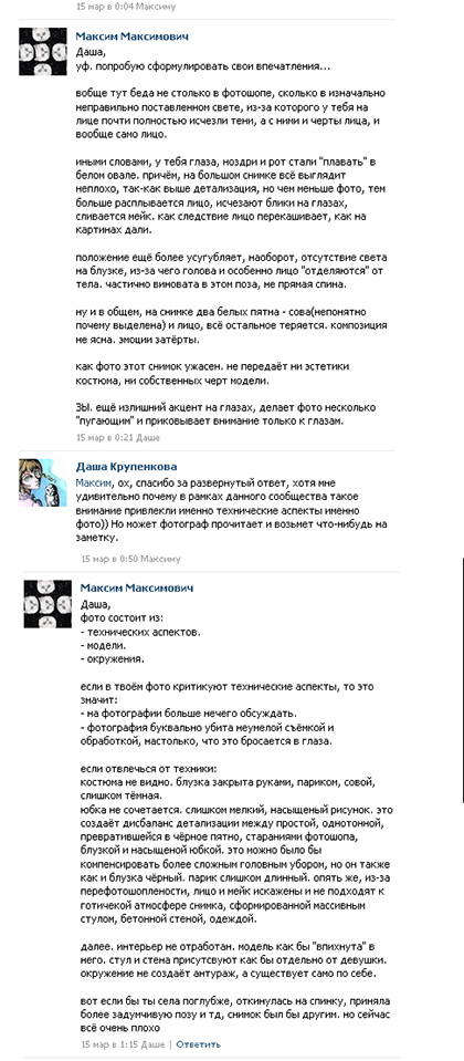 Максохейтач, объясни слоупоку, а почему ответ Наоко - это посыл нах? Я рили не понимаю, почему вы так восприняли. Вообще, я бы расстроилась на ее месте, такой необоснованный наезд! и не понятно, почему он на такой текст разродился, хотя вообще обычно фото не комментирует. По крайней мере я не помню за последнего время вообще никакой критики фоток наших лолит от Макса.