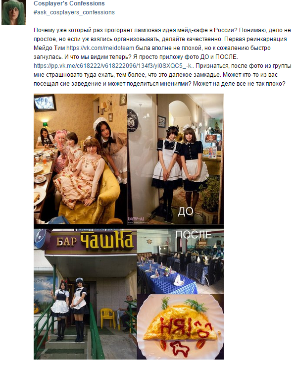 Вообще интересно, этот мейдокостыль реально может приносить деньги? Они работают 1 в неделю, клиентов два с половиной калеки - не верю, что такая хуета может окупаться. Из наших хоть кто-то там был? Или мне зареквестить фитбеки в /фд/?