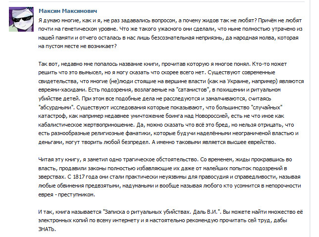 >>16568 интересно, а с хера ли он всех поудалял и из святорусича трансформировался в котомакса? у него раньше около 150 друзей вроде было, среди которых и лолит не мало