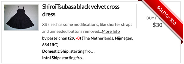 >>42315 так я его не за 30 продал, а за 65 (насколько я помню). и потом его уже 3 раза перепродали. платье-то старое, да и размер специфический.