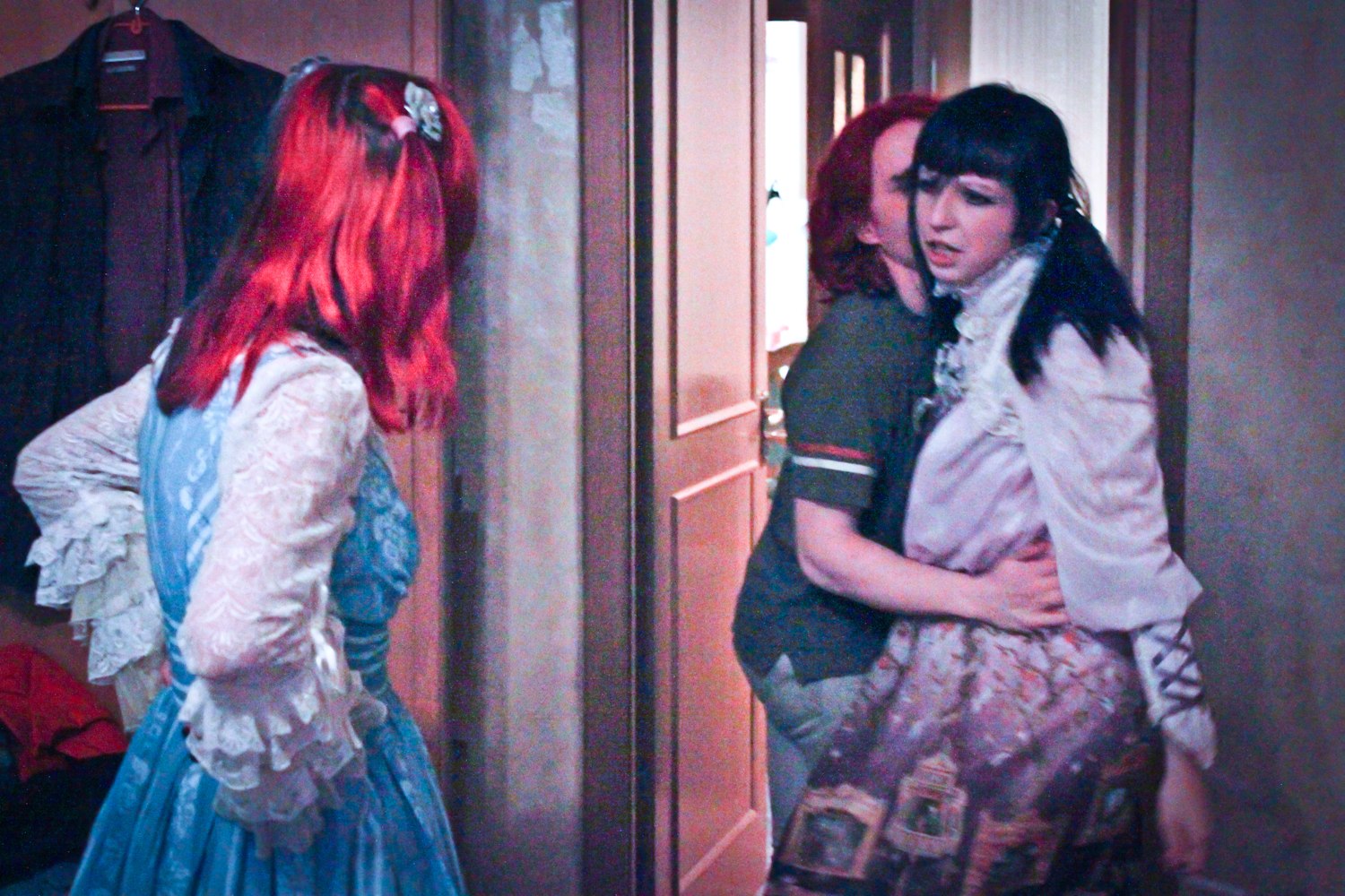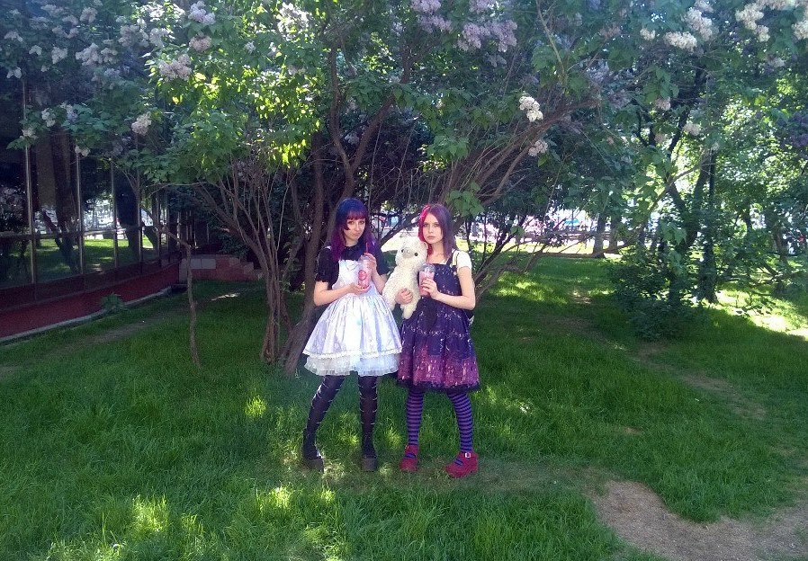 Так вот. Когда я уехала в Москву, у меня тут появились новые знакомые и друзья, а с теми кто живет в Украине, я стала видеться только в поездах в Украину, собственно. Не все из них интересуются стилем, но на всякий случай я его пропагандирую всем. Вот например Таня, жена Кати, интересовалась стилем, но не одевалась так, и это наверное именно мы с Рикой так повлияли на них, что они стали оба полностью менять Танин гардероб в лолитную сторону, и так у меня появилось еще пару друзей, которые интересуются этим, и с которыми можно "перетереть за платья". Еще я пыталась пропагандировать лолитный стиль Бодлер, но ей хоть и нравится внешне, таки траты она восприняла без восторга. Хотя ей вроде бы нравится мерять мои платья, и мне норм давать их померять кому-то из близких друзей, которым в них нравится, если они например не готовы тратить на эти тряпки столько денег.