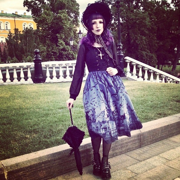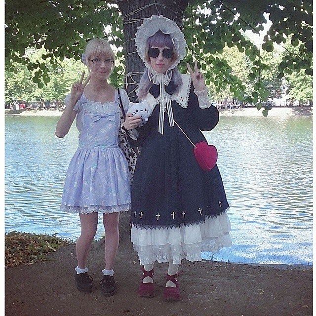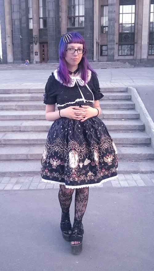 Насчет друзей. Да, им тоже нравится. Но на самом деле друзья, которые меня чуть более чем полностью поддерживают в этом, у меня появились тоже только в Москве. Хотя, не хотелось бы так говорить, на самом деле. Чтобы было понятнее, уточню насчет того, как я вообще стала одеваться так более часто, и почему, и что меня к этому подтолкнуло. Когда я еще училась в школе, и у меня только появились первые базовые вещи с бодилайна, которые я носила иногда, но не очень часто (просто я не могу каждый день надевать одно и то же, меня циклит на желании чередовать), я познакомилась с Брагинской. Изначально эта девочка написала мне потому, что она хотела чтобы я помогла ей заказать с бодилайна. А позже я стала с ней общаться, и кстати именно она пригласила меня вообще в косплей. До нее я об этом и не думала, а она мне подсказала мол, что если я мило смотрюсь в платьях, почему бы и косплей не попробовать. Но это я от темы отхожу опять, косплей тут упомянут только тем боком, что я хотела бы объяснить, что мне сложно на самом деле начать чем-то увлекаться без единомышленников, потому что на первых этапах скучно. Так бы я очень долго собирала свой базовый гардероб, но и за того, что я стала по выходным сидеть с Брагинской в какой-нибудь кофейне, и часами обсуждать всякие классные платья и принты, и прочие лолитные штуки, мне стало интереснее это все покупать, потому что с этим сраным восприятием экстравертивным это по-моему так и работает. Ну вот например косплеить без ее пинка я бы так и не начала, это точно. С лоли-стилем все бы сложилось иначе, потому что я так одевалась и до этого, но все равно это все ракскручивалось бы дольше, да.