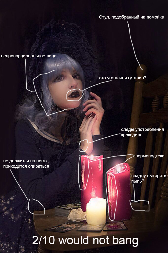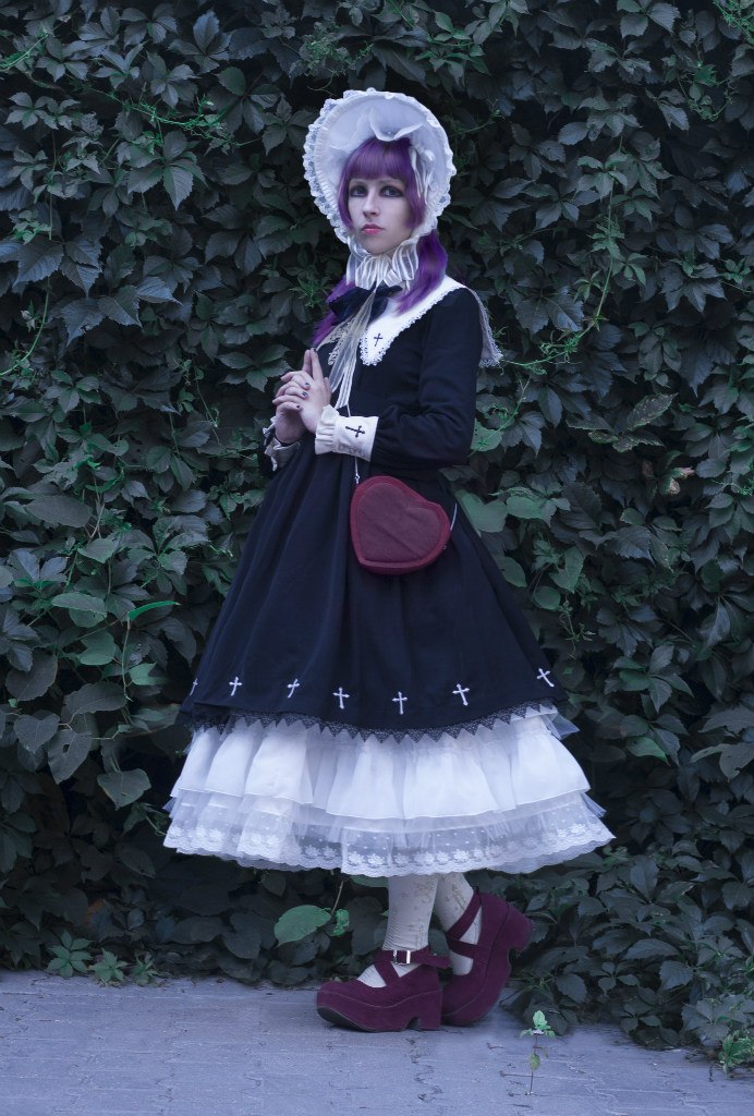 5. Возможность впихнуть в свою одежду немного какого-то символизма. Символизм мне очень нравится, а в лолиту его можно классно впихнуть, потому что лолитная одежда вообще состоит из многих аксессуаров, и каждый может что-нибудь да значить. Правда обычно я особо не заморачиваюсь о том, чтобы объяснить смысл той или иной вещи где-нибудь под образом, потому что мне часто лень, и мне кажется что всем похуй. Зато я иногда наседаю на уши Рике с этими историями, или к друзяшкам. Банальный пример. Когда я брала черное платье с грехами, я изначально заказала к нему колготки полупрозрачные с принтом из разных цветом, и полупрозрачную шифоновую блузку, а так же обувь с многими открытыми местами, потому что мне казалось классным символизмом то, что в раю изначально люди не смущались своей наготы, а в лолите, с кучей канонов, полупрозрачные штуки как раз могли бы символизировать это. Учитывая то, что ткань там шифоновая еще, и сама по себе, без подкладки, она тоже полупрозрачная, задумка в общем в моем восприятии то что надо. короче обычно всю свою фигню я продумываю именно так, но при этом я считаю что рассказывать ее кому-то кроме близких знакомых совершенно неуместно, до тех пор пока меня именно не спросят об этом, потому что у всех своих забот хватает, и никому не всралось это слушать. Вот. :3